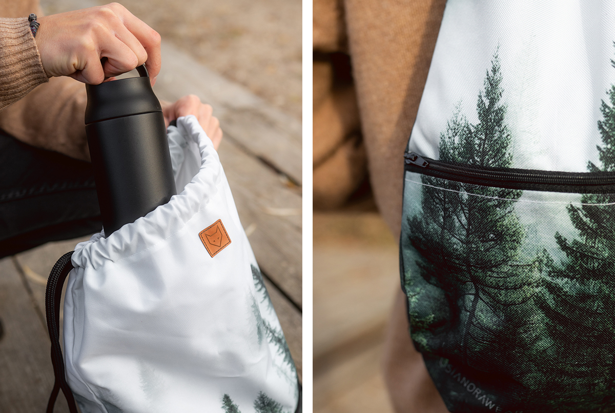 Stonowane kolory, autorskie printy i praktyczna, zamykana na zamek kieszeń na telefon czy klucze. Wybierz plecak, który kocha naturę tak samo jak Ty. Każdy projekt to autorska opowieść przeniesiona na wytrzymały, wodoodporny poliester z recyklingu. Tworzymy workoplecaki premium, dla wszystkich, którzy kochają góry, lasy i modny design. Dzięki pojemności 15l i grubym, solidnym sznurkom, świetnie sprawdzą się w codziennym użytkowaniu, jak i na górskiej wycieczce.