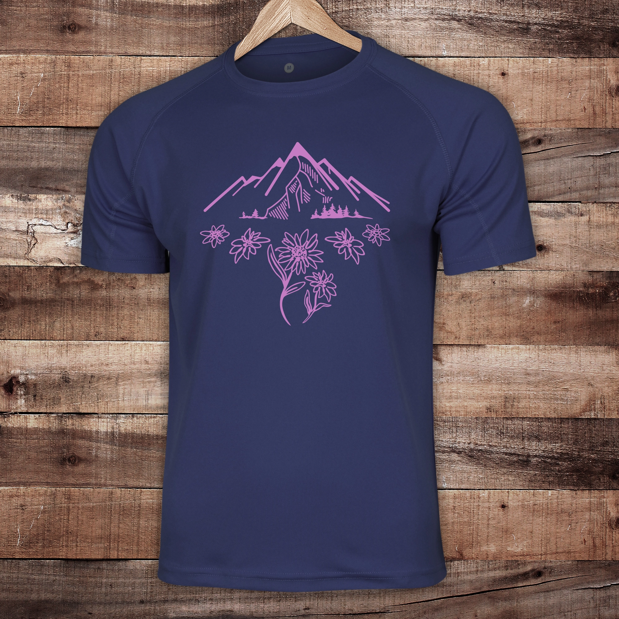 Poczuj oddech wysokich gór na własnej skórze. Koszulka „Alpine Flowers” to hołd dla alpejskich łąk, które rozkwitają w cieniu surowych skał. Połączenie technicznej funkcjonalności z delikatnością górskiej natury sprawi, że nawet na najtrudniejszym szlaku poczujesz się lekko i stylowo. Niech Twoja pasja kwitnie z każdym zdobytym szczytem. Oddychający, szybkoschnący materiał odprowadza wilgoć, gdy Ty zdobywasz przewyższenia, a unikalny nadruk gór i kwiatów wyróżni Cię w tłumie. Koszulka trekkingowa w kolorze granatowym.