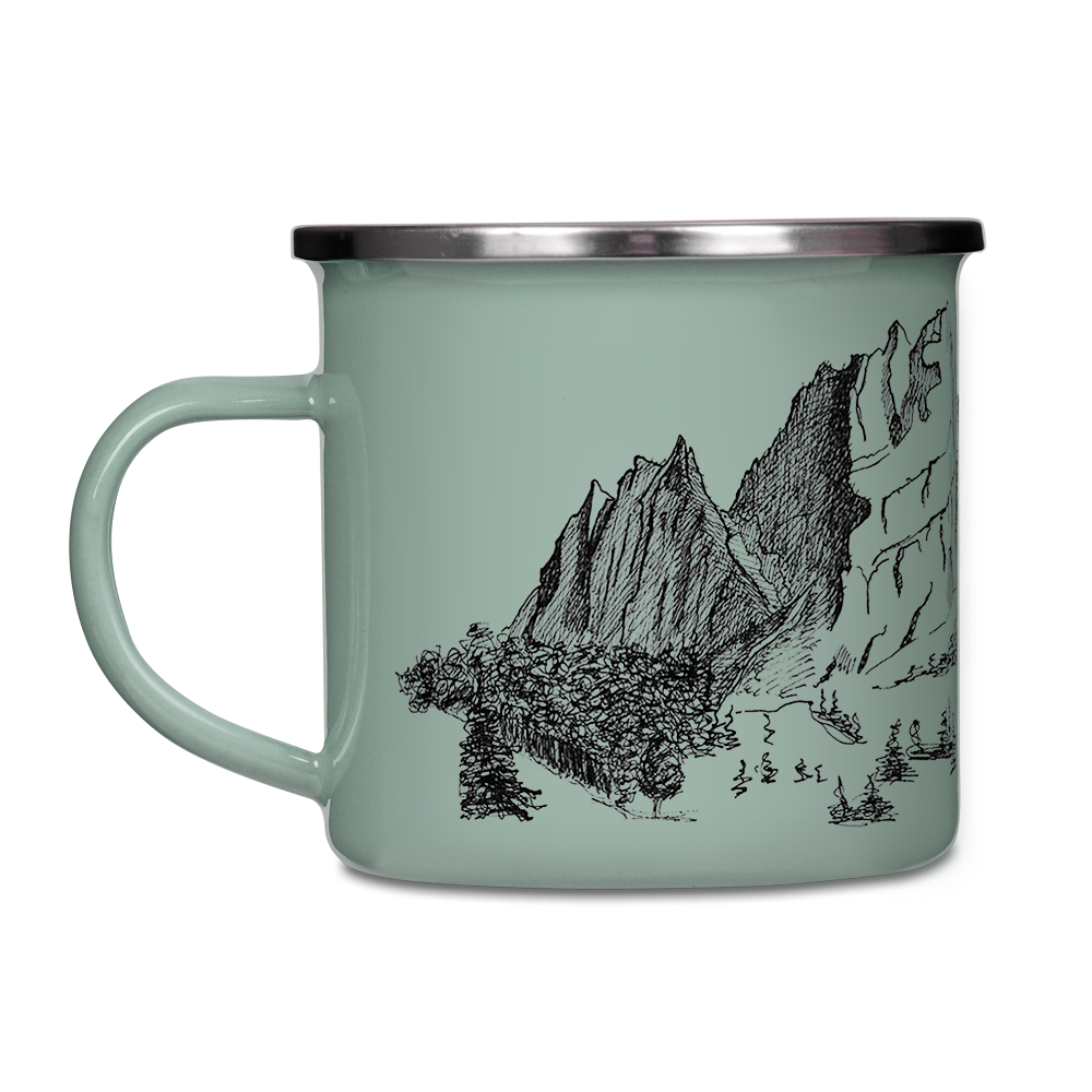 Klasyczny kubek emaliowany z kolekcji Lisia Nora Mountains o pojemności 330 ml, dla miłośników gór, pieszych wędrówek i dzikiej przyrody. Rysunek na kubku przedstawia piękną, górską panoramę autorstwa uzdolnionej ukraińskiej projektantki - Anastasii Schevchuk. Kubek z górami jest ciekawą propozycją dla tych, którzy lubią kubki bez napisów.