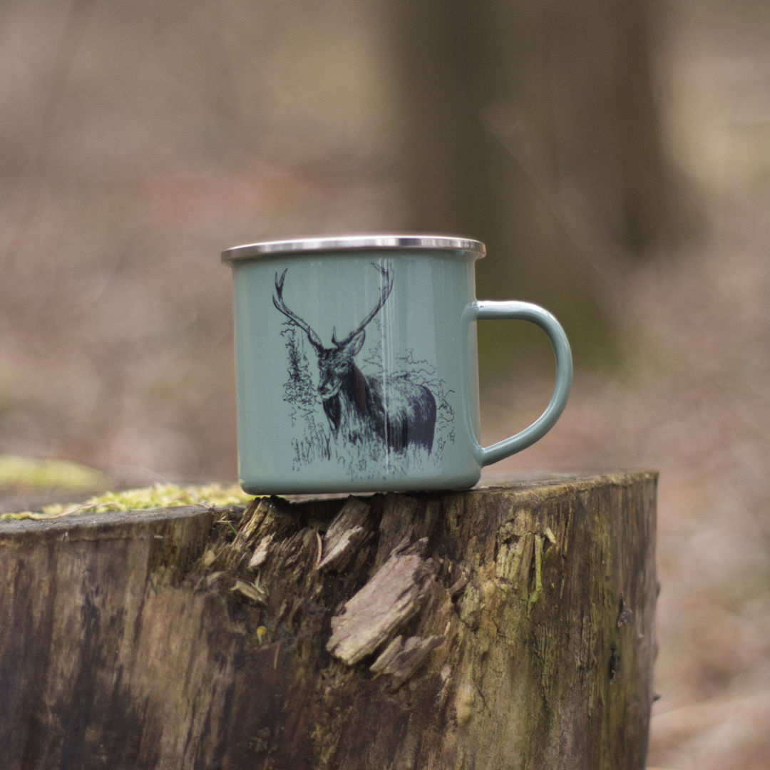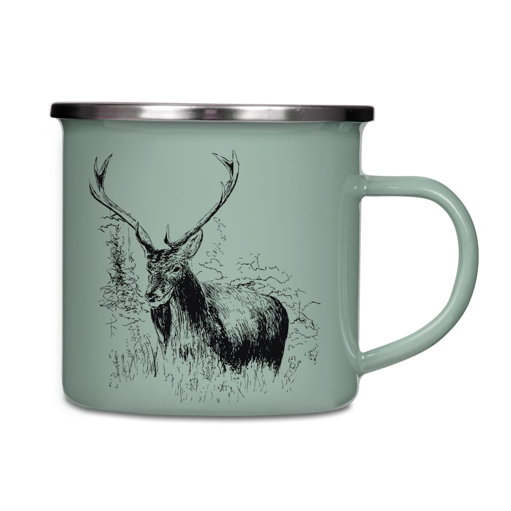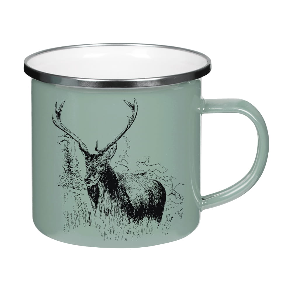 Kubek emaliowany - Jeleń szlachetny - SZAROZIELONY