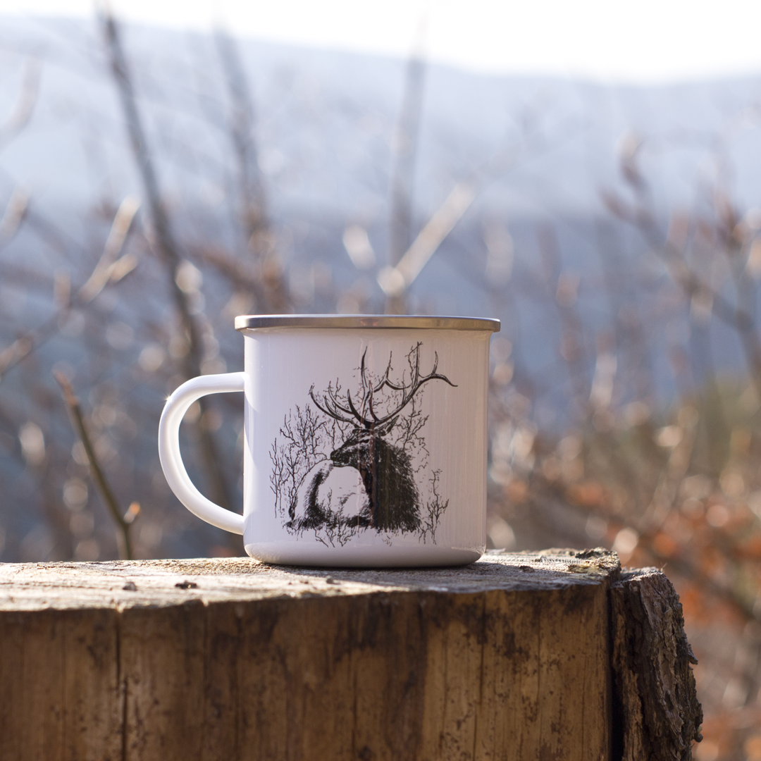 Kubek emaliowany o pojemności 330 ml z wizerunkiem jelenia. Rysunek zdobiący kubek, wykonał utalentowany projektant i grafik - Tomasz Kosarzecki. Produkt z klasycznej kolekcji Lisiej Nory, przedstawiającej zwierzęta, które możemy spotkać w Polsce, w naturalnym środowisku. Projekt inspirowany dziką przyrodą oraz oszczędnym w kolory, skromnym stylem skandynawskim. Kubek emaliowany to świetny pomysł na prezent, dla wszystkich ceniących sobie oryginalne, niszowe produkty i interesujący design.