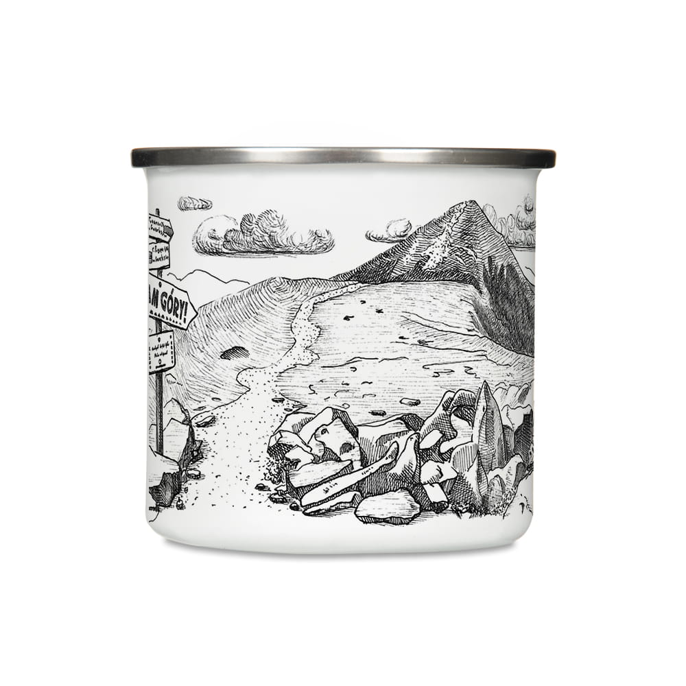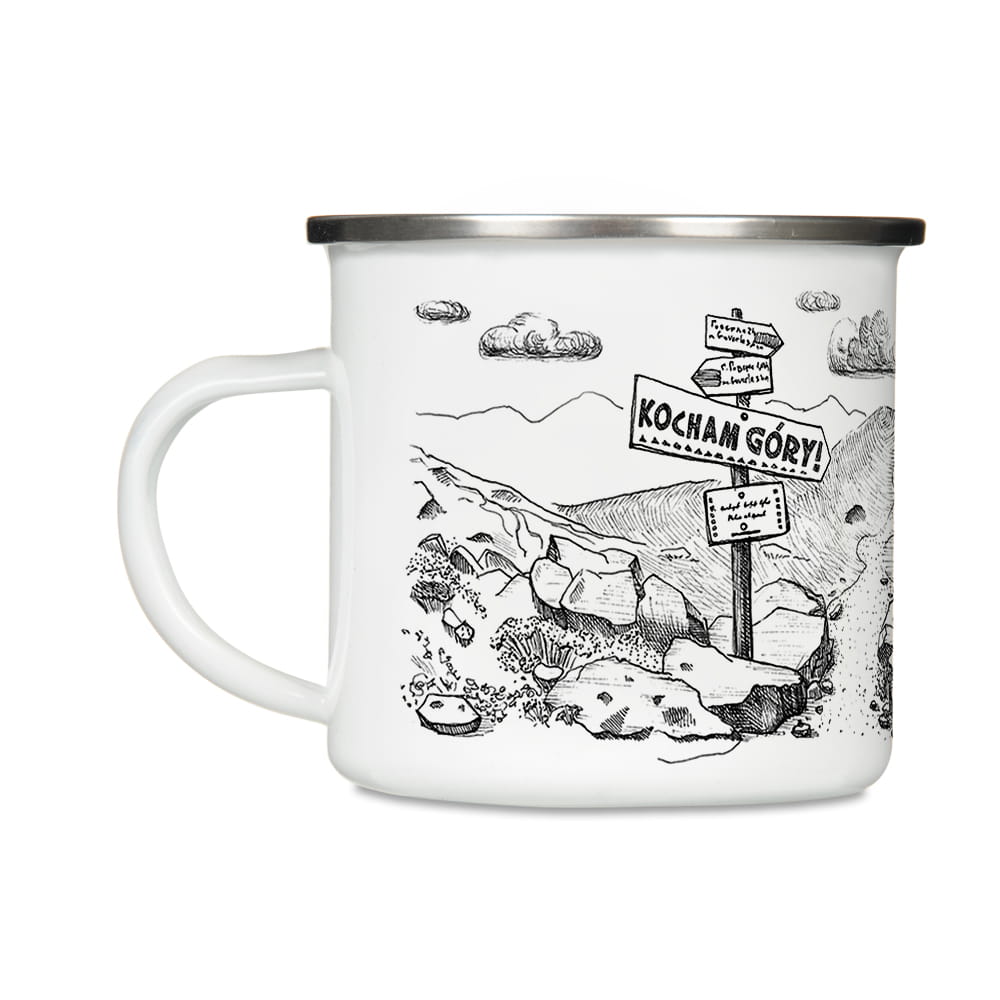 Kubek dla wszystkich miłośników gór i beskidomaniaków lubiących długimi godzinami włóczyć się po szlakach, by wracać po zmroku. Pamiętajcie, że w ramach personalizacji, możecie umieścić na nim krótką sentencję lub cytat. Istnieje także możliwość zmiany napisów na drogowskazach, by wpisać tam imię lub inny, dowolny tekst. Kubek emaliowany z górami, to świetny pomysł na prezent dla bliskiej osoby: na święta, urodziny lub inną okazję.