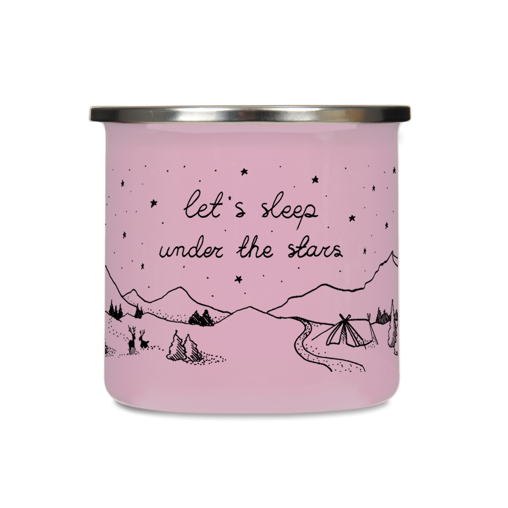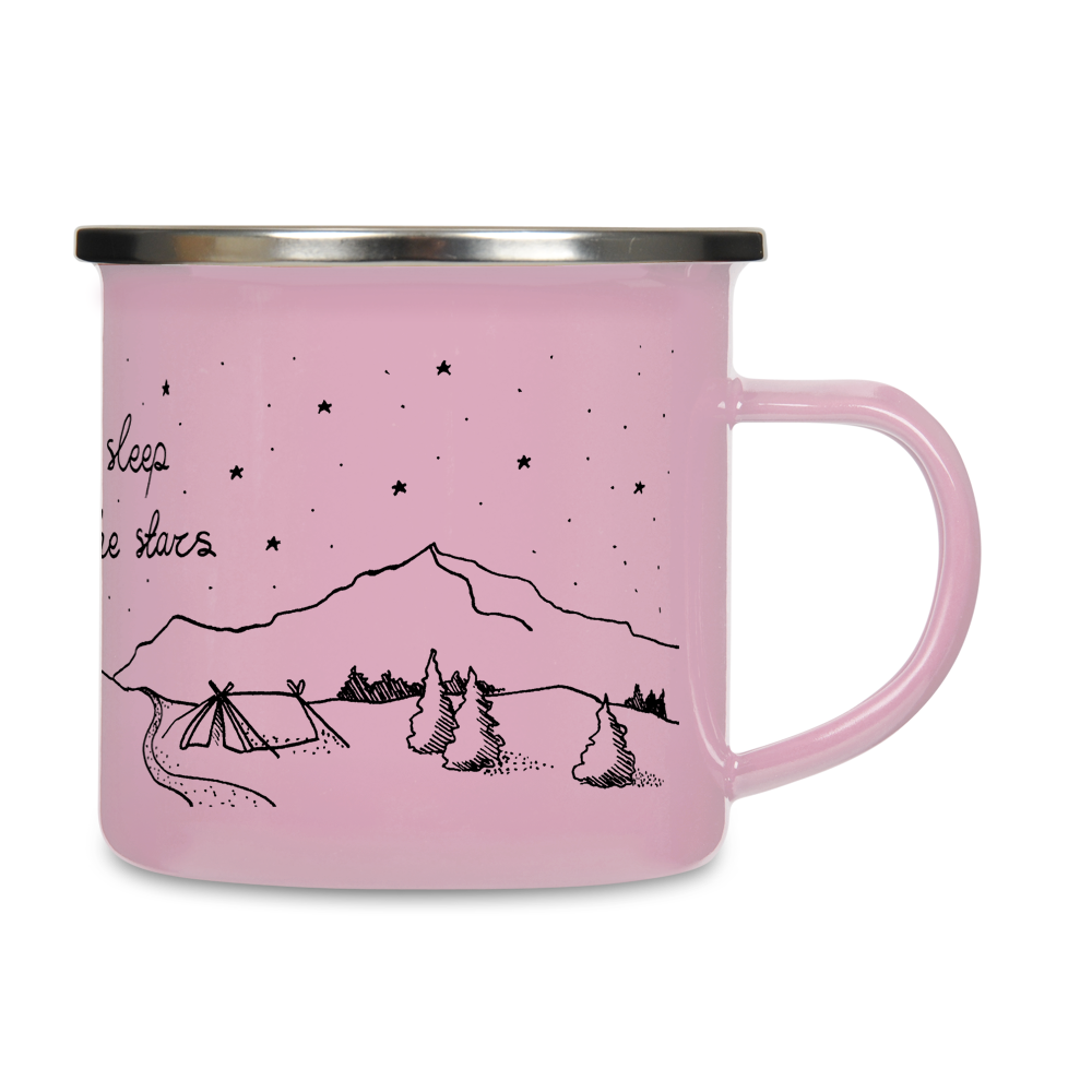 Kubek emaliowany - Let's sleep under the stars - Różowy