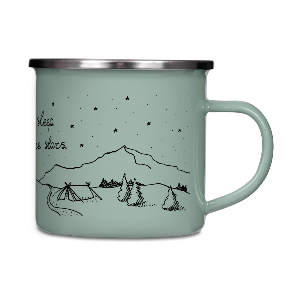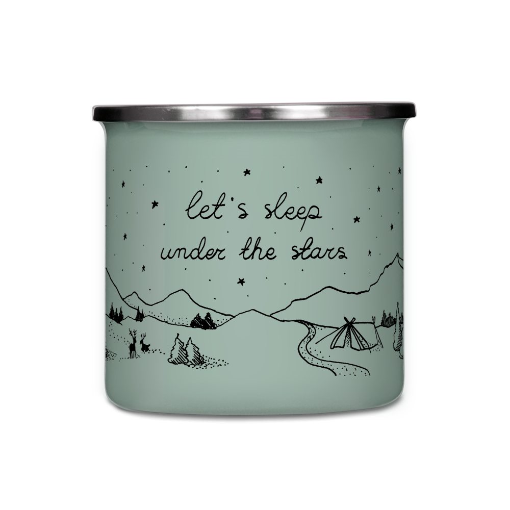 Kubek emaliowany - Let's sleep under the stars - SZAROZIELONY