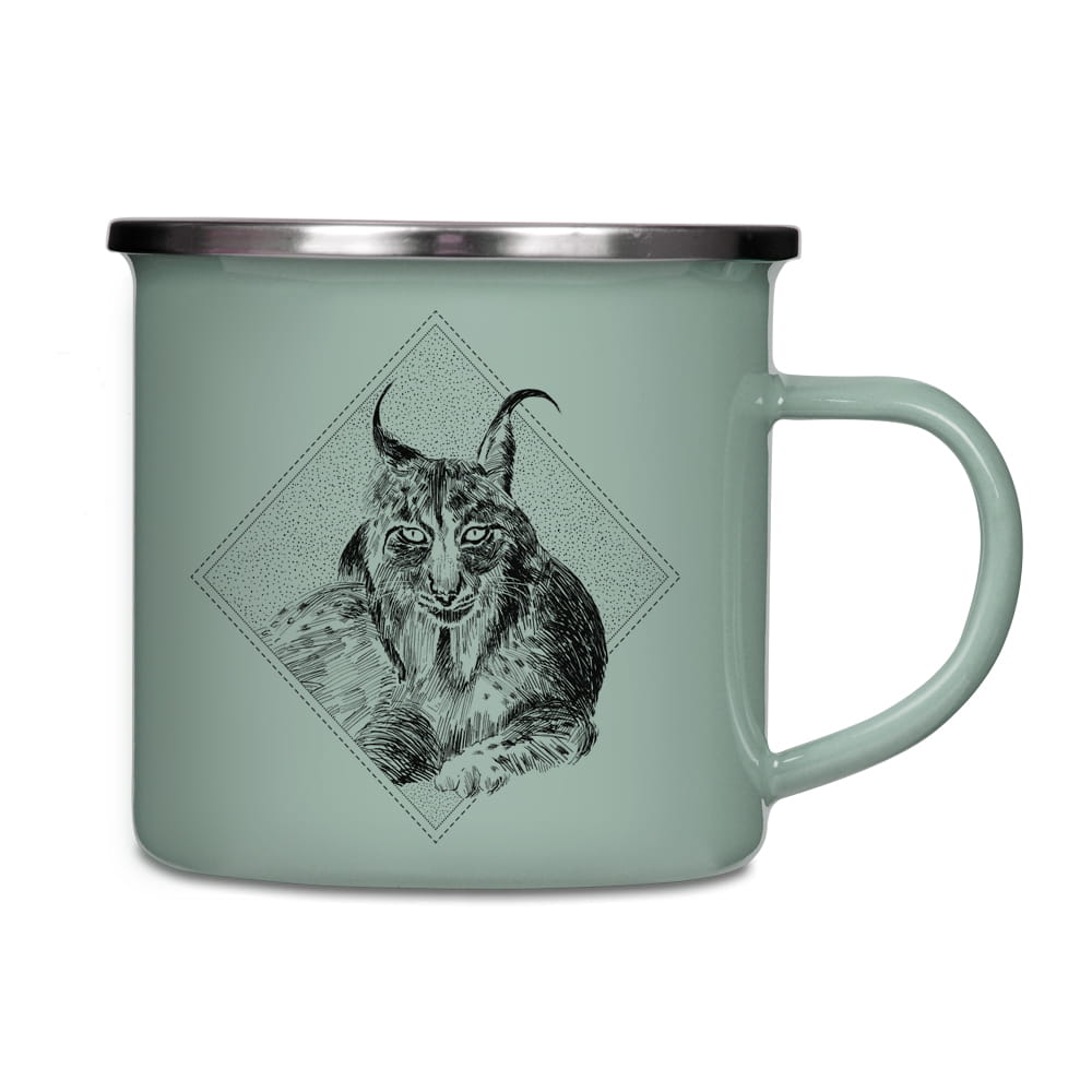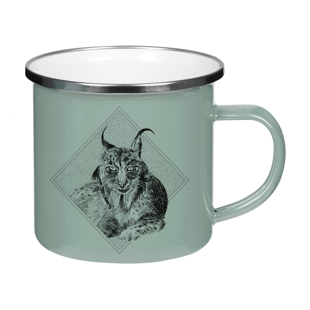 Kubek emaliowany - Ryś euroazjatycki - SZAROZIELONY
