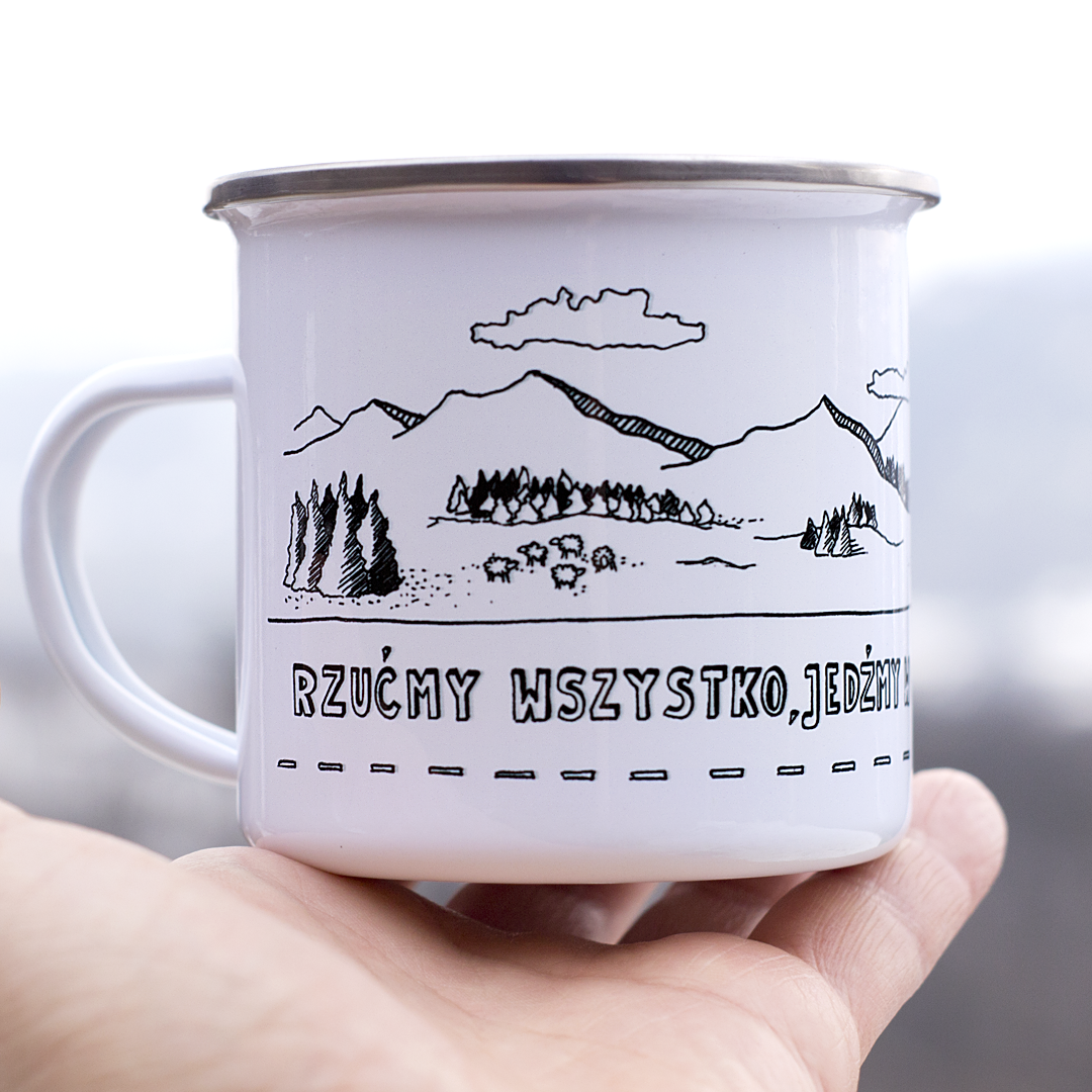 Kubek emaliowany - Rzućmy wszystko, jedźmy w góry