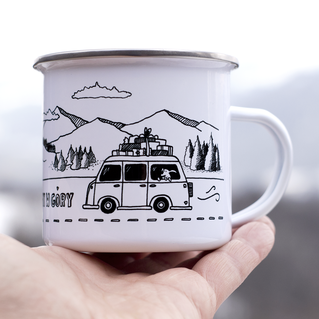 Kubek emaliowany z kolekcji Lisia Nora Mountains o pojemności 330 ml, z kultowym hasłem „Rzućmy wszystko, jedźmy w góry”. Pełen humoru i dystansu rysunek górskiej panoramy, wykonany został przez uzdolnioną, polską ilustratorkę - Ulę Awdankiewicz. Jeśli kochasz przygodę i górskie wojaże, nie trać czasu, spakuj samochód po sam dach i ruszaj w drogę! Kubek może posłużyć jako pomysłowa i sympatyczna dekoracja, ale świetnie sprawdzi się także w górskim terenie.