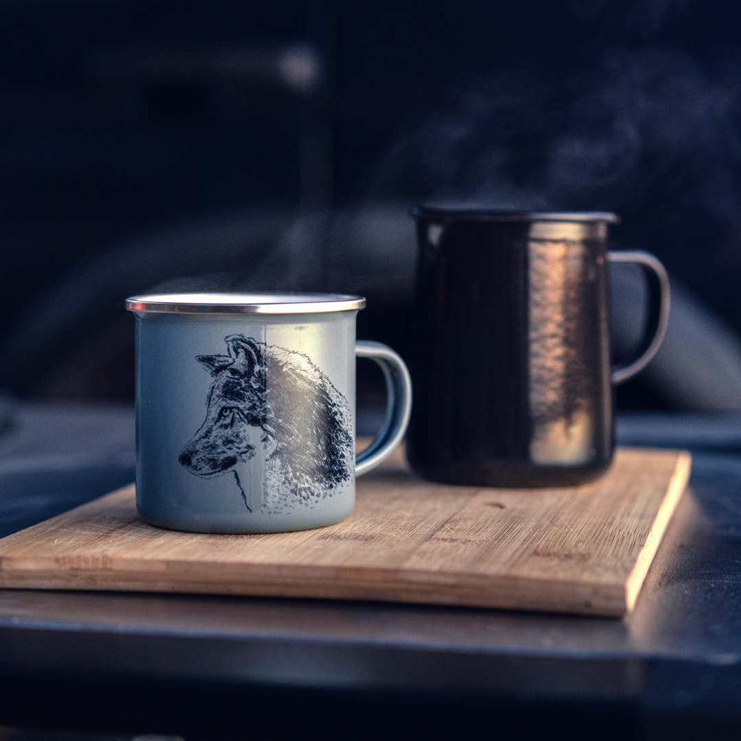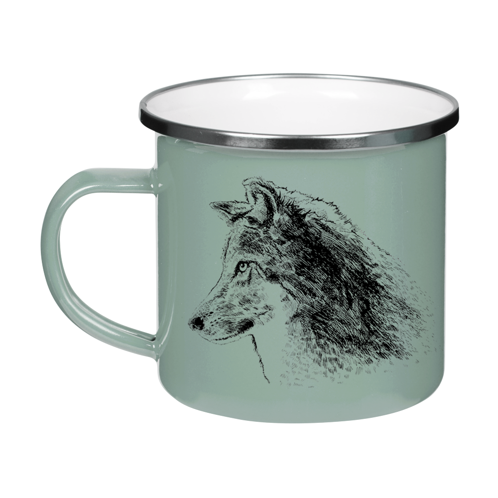 Kubek emaliowany - Wilk szary - SZAROZIELONY