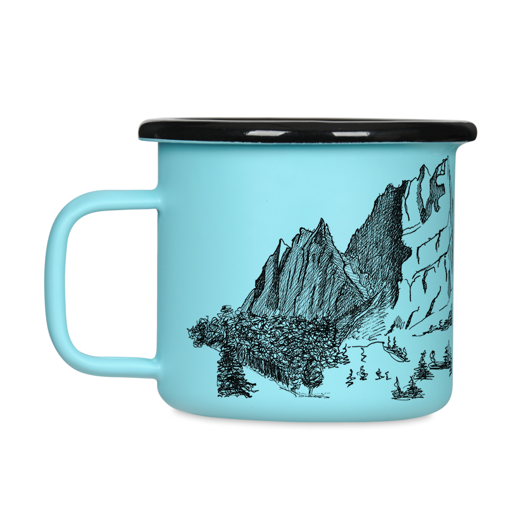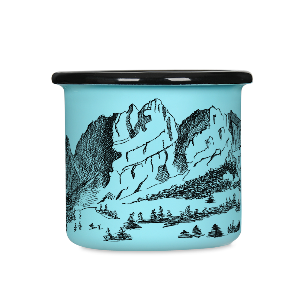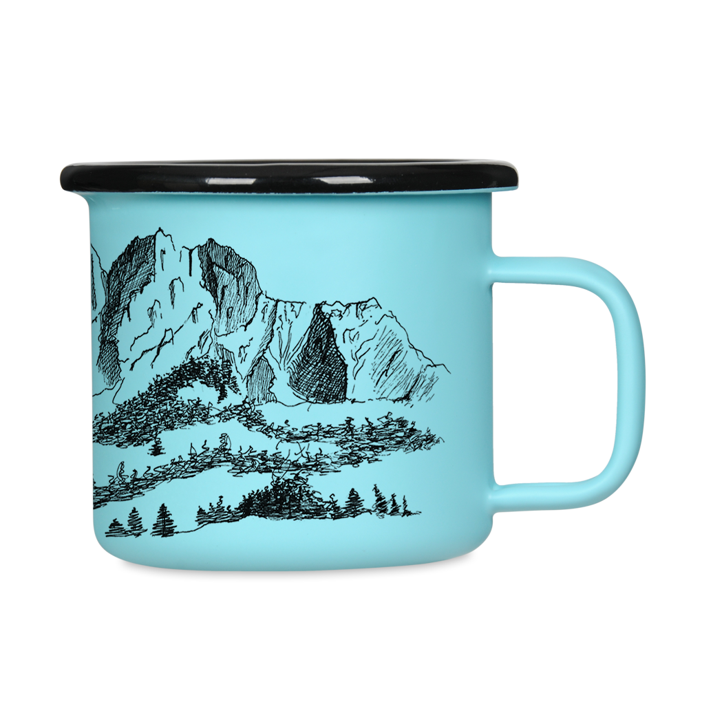 Kubek emaliowany retro z kolekcji Lisia Nora Mountains o pojemności 360 ml, dla miłośników gór, pieszych wędrówek i dzikiej przyrody. Rysunek na kubku przedstawia piękną, górską panoramę autorstwa uzdolnionej ukraińskiej projektantki - Anastasii Schevchuk. Kubek z górami jest ciekawą propozycją dla tych, którzy lubią kubki bez napisów.