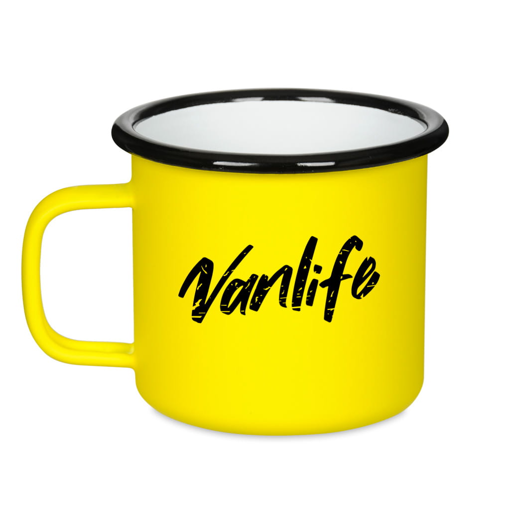Kubek emaliowany retro - Vanlife - ŻÓŁTY