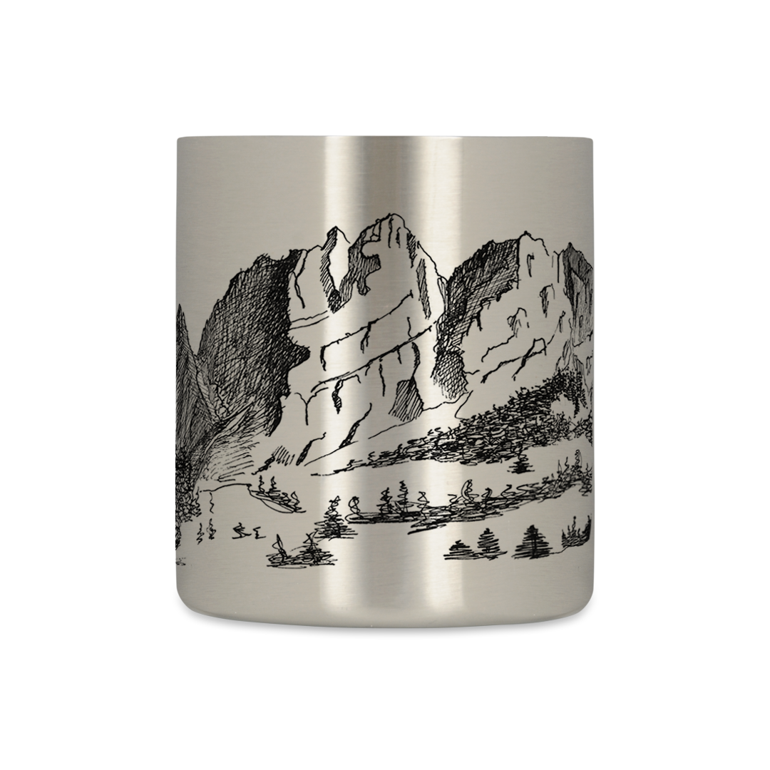 Kubek metalowy z kolekcji Lisia Nora Mountains o pojemności 300 ml, dla miłośników gór, pieszych wędrówek i dzikiej przyrody. Rysunek na kubku przedstawia piękną, górską panoramę autorstwa uzdolnionej ukraińskiej projektantki - Anastasii Schevchuk. Kubek z górami jest ciekawą propozycją dla tych, którzy lubią kubki bez napisów.