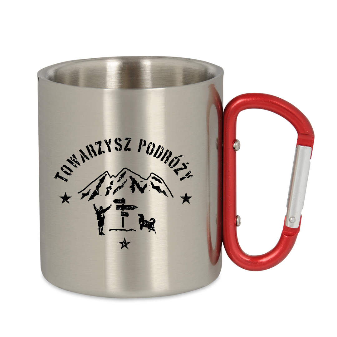 Kubek wyposażony jest w uchwyt typu karabińczyk oraz podwójne metalowe ścianki, dzięki czemu jest jeszcze bardziej wytrzymały. Czerwona klamra umożliwia przypięcie kubka do paska lub plecaka, dzięki czemu nie zajmuje on niepotrzebnie miejsca wewnątrz. Kubek z karabińczykiem to niezbędne wyposażenie każdego górskiego wędrowca, lecz także świetny pomysł na prezent.