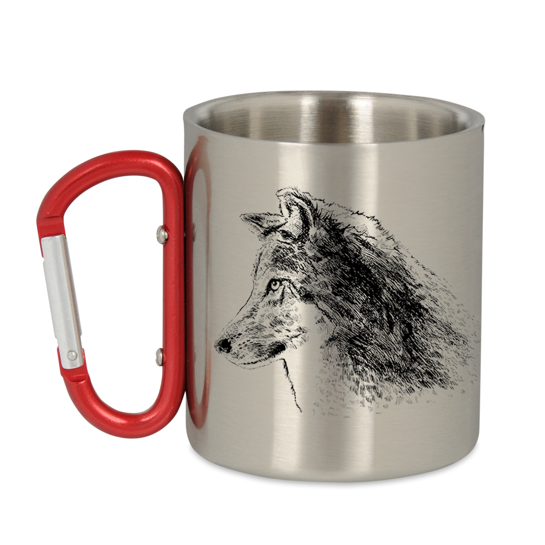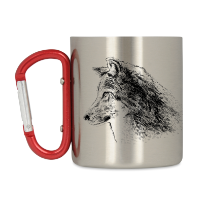Kubek wyposażony jest w uchwyt typu karabińczyk oraz podwójne metalowe ścianki, dzięki czemu jest jeszcze bardziej wytrzymały. Czerwona klamra umożliwia przypięcie kubka do paska lub plecaka, dzięki czemu nie zajmuje on niepotrzebnie miejsca wewnątrz. Kubek z karabińczykiem to niezbędne wyposażenie każdego górskiego wędrowca, lecz także świetny pomysł na prezent.