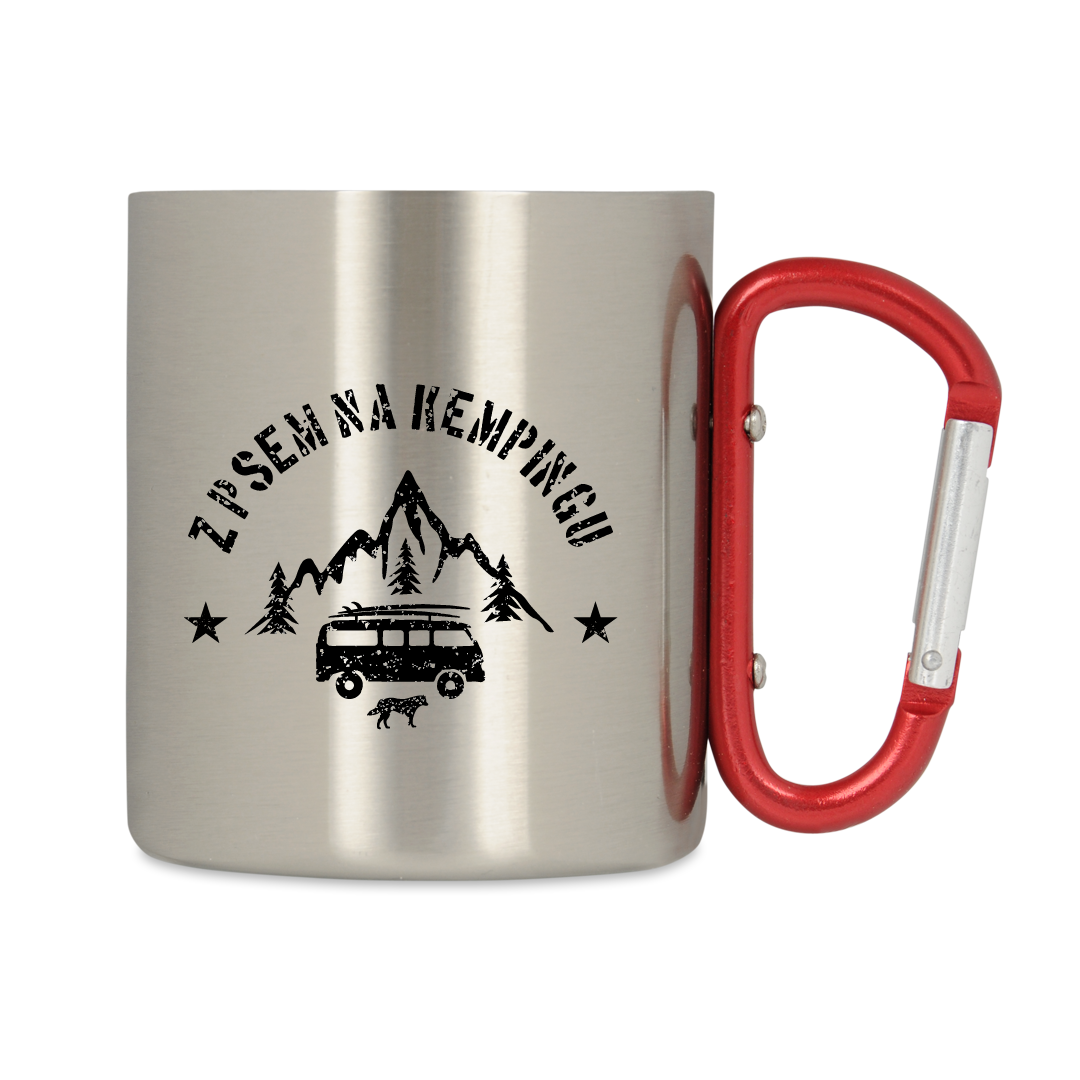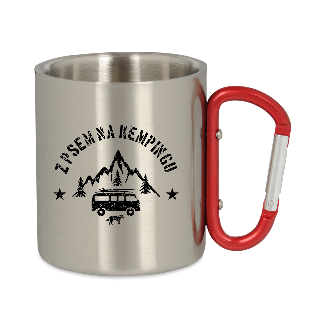 Kubek wyposażony jest w uchwyt typu karabińczyk oraz podwójne metalowe ścianki, dzięki czemu jest jeszcze bardziej wytrzymały. Czerwona klamra umożliwia przypięcie kubka do paska lub plecaka, dzięki czemu nie zajmuje on niepotrzebnie miejsca wewnątrz. Kubek z karabińczykiem to niezbędne wyposażenie każdego górskiego wędrowca, lecz także świetny pomysł na prezent.