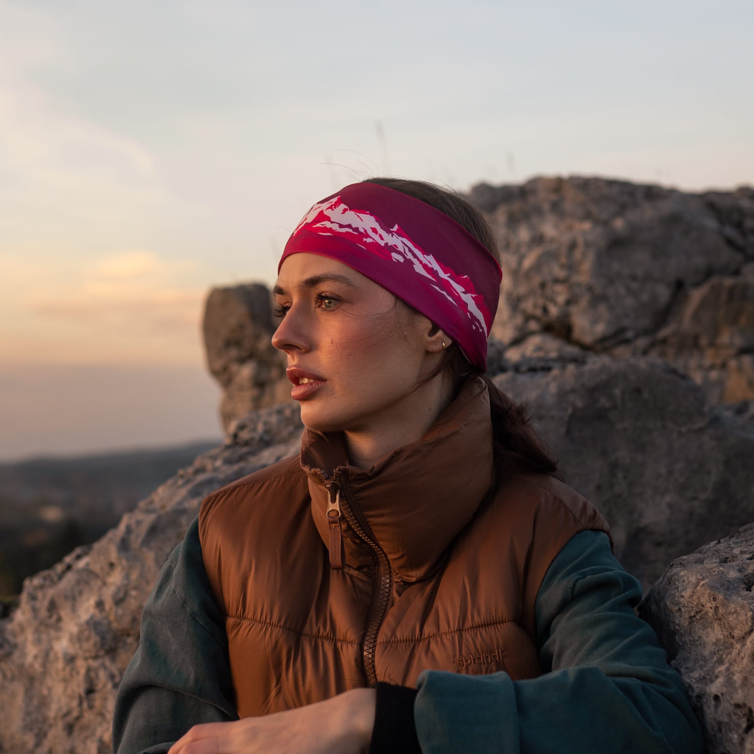 Opaska elastyczna na głowę - Góry - MAGENTA
