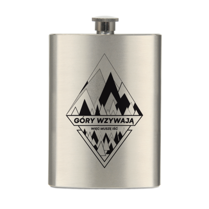 Klasyczna, stalowa piersiówka o pojemności 230 ml z górskim, geometrycznym wzorem. Autorem ilustracji zdobiącej produkt jest polski projektant: Tomasz Kosarzecki. Nowoczesna, świeża grafika w połączeniu z kultowym już hasłem "Góry wzywają, więc muszę iść", tworzą świetne połączenie, dzięki któremu piersiówka prezentuje się zjawiskowo.