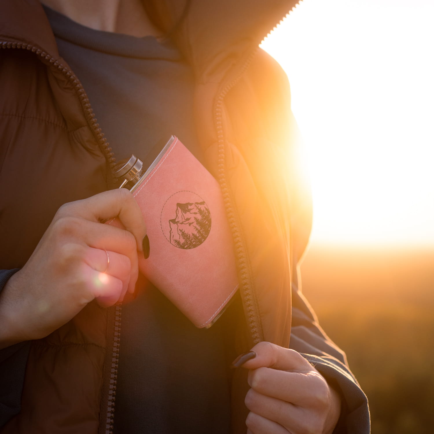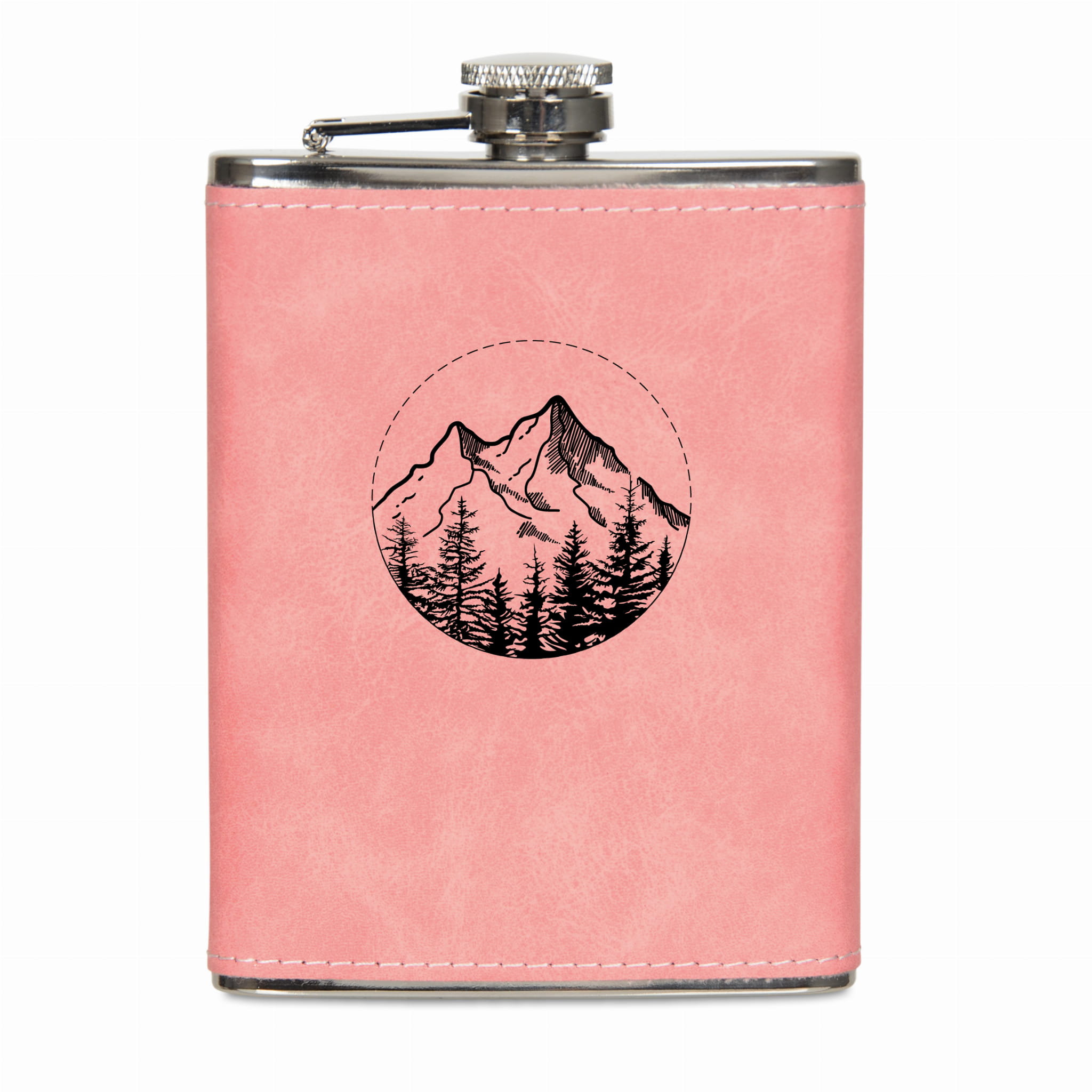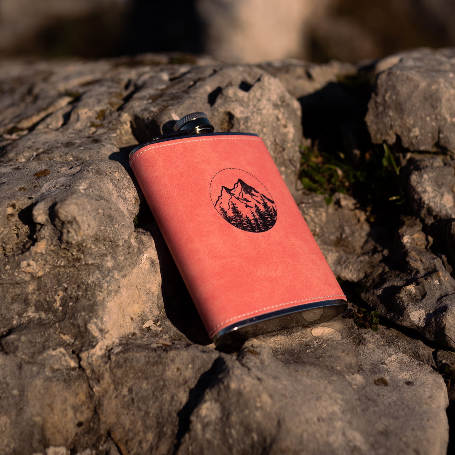 Piersiówka w ekoskórze 200 ml - Świt w górach - RÓŻOWA