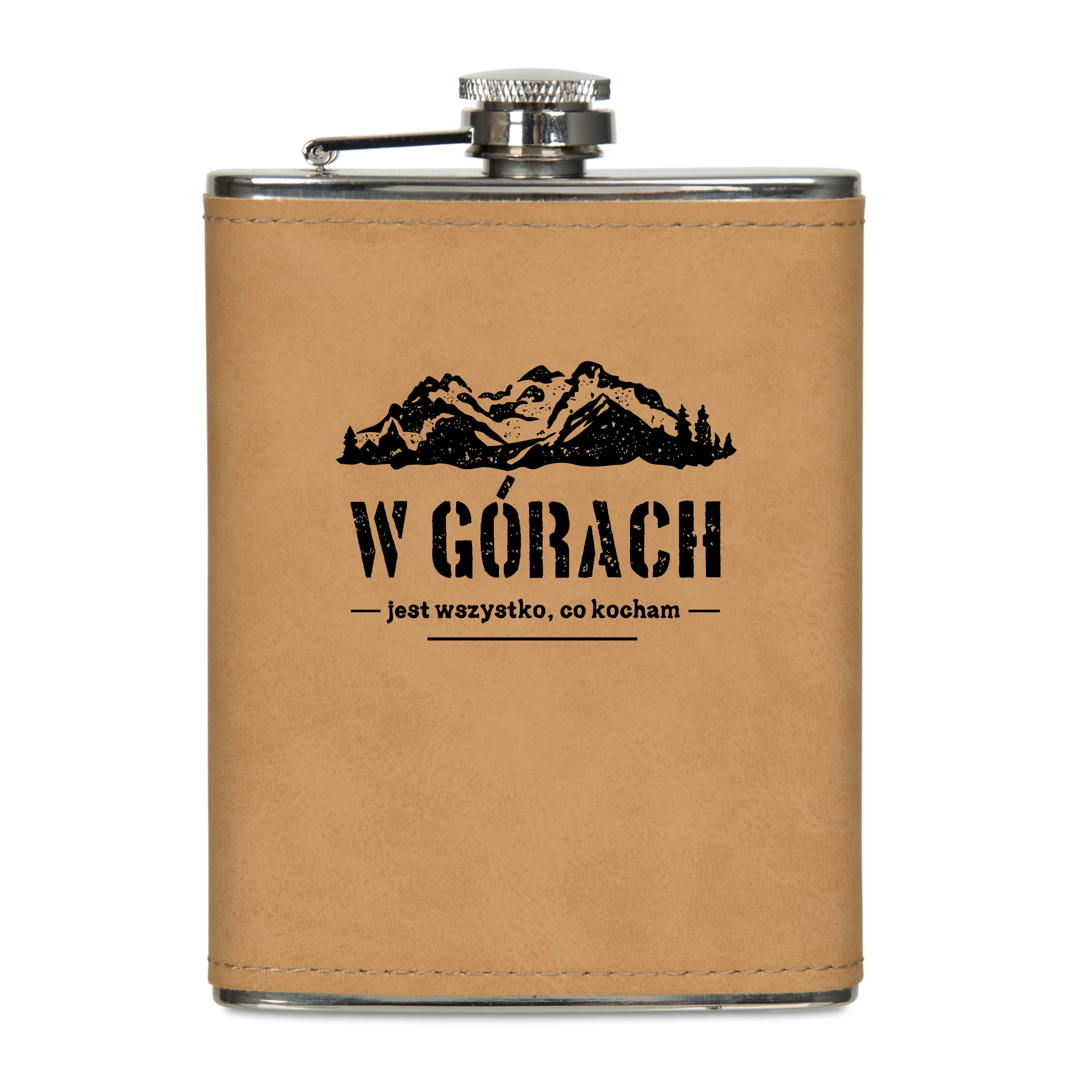 Piersiówka w ekoskórze 200 ml - W górach jest wszystko, co kocham - JASNOBRĄZOWA / OUTLET