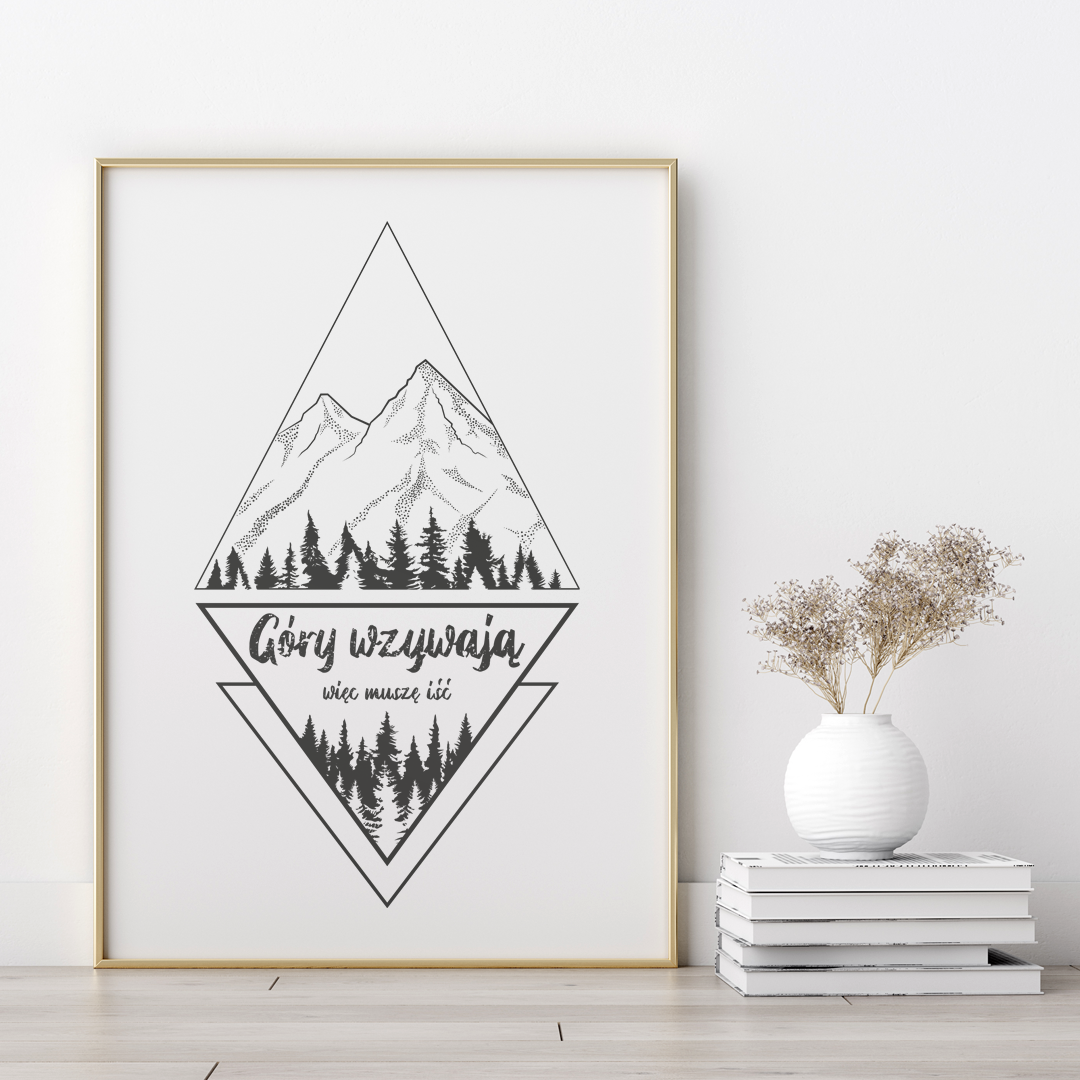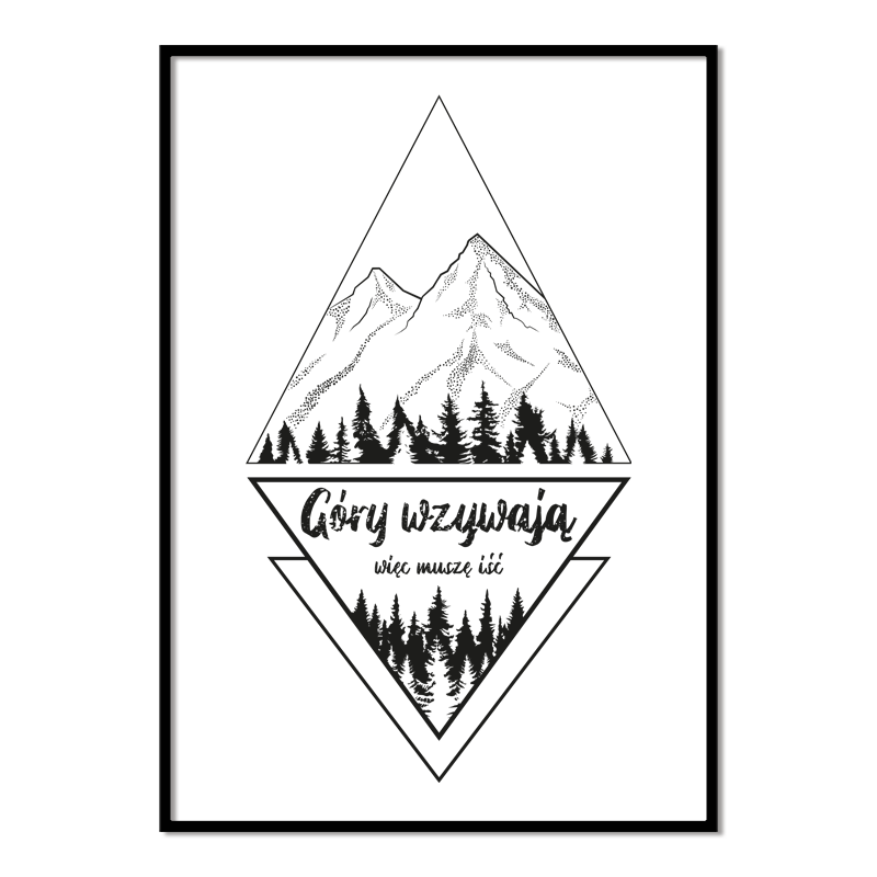 Plakat z ilustracją przedstawiającą Tatry Zachodnie. Zamkniętą w geometrycznym kadrze górską panoramę uzupełnia kultowe hasło: "Góry wzywają, więc muszę iść". Autorem grafiki jest polski projektant: Tomasz Kosarzecki. Czarno-biały plakat z górami, posłuży jako stylowa dekoracja salonu bądź sypialni, a przy okazji pozwoli "być bliżej gór" wtedy, gdy akurat nie możemy się w nie wybrać.