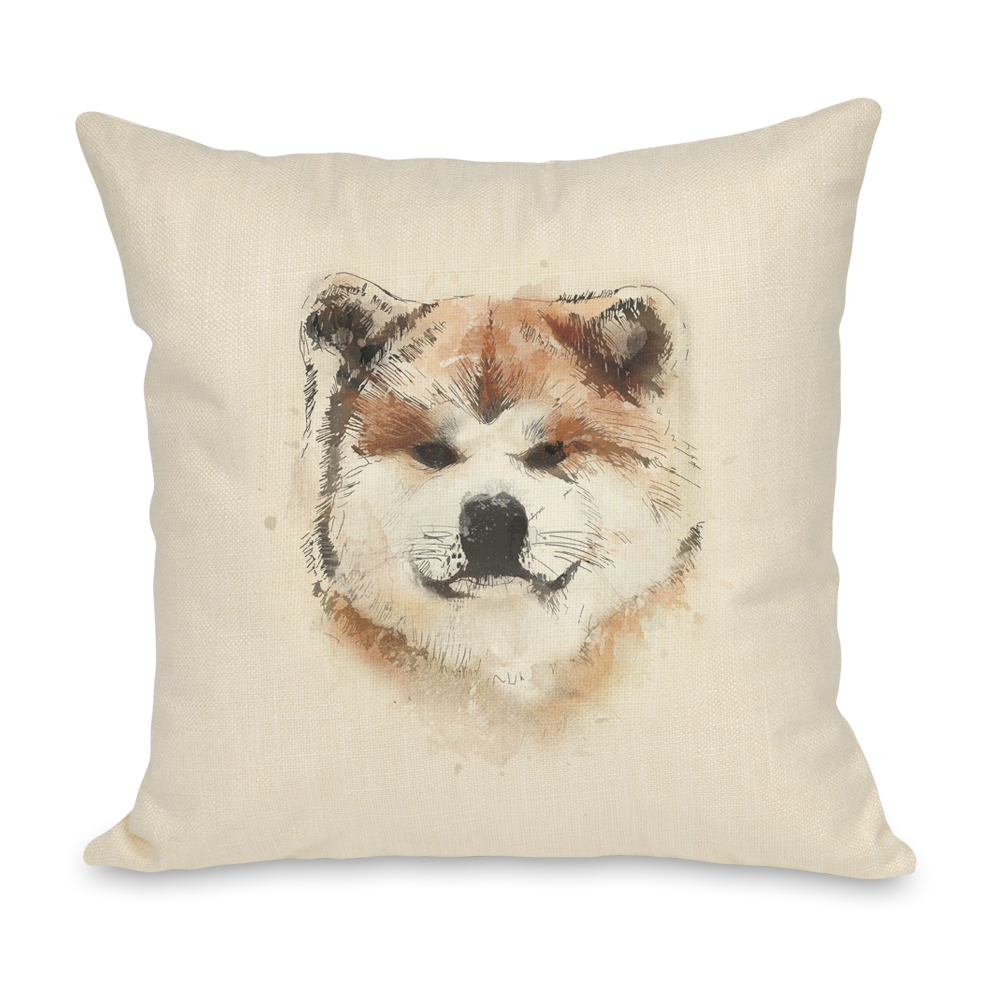Poszewka dekoracyjna o wymiarach 45x45 cm, z autorską grafiką psa rasy Akita Inu. Wykonana została z tkaniny poliestrowej, splotem przypominająca naturalny len. Jest przyjemna w dotyku, trwała i odporna na odkształcenia. Posiada ukryty suwak (zamek błyskawiczny). Estetyczny nadruk na poszewce cechuje się dużą trwałością i szczegółowością. Poszewka jest sprzedawana bez wkładu, można osobno kupić go TUTAJ.