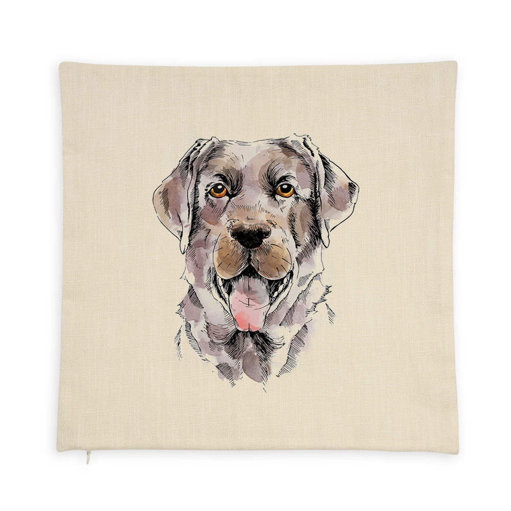 Poszewka dekoracyjna o wymiarach 45x45 cm, z autorską grafiką Labradora. Wykonana została z tkaniny poliestrowej, splotem przypominająca naturalny len. Jest przyjemna w dotyku, trwała i odporna na odkształcenia. Posiada ukryty suwak (zamek błyskawiczny). Estetyczny nadruk na poszewce cechuje się dużą trwałością i szczegółowością. Poszewka jest sprzedawana bez wkładu, można osobno kupić go TUTAJ.