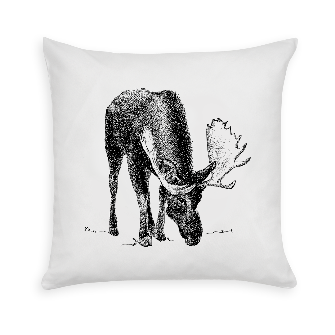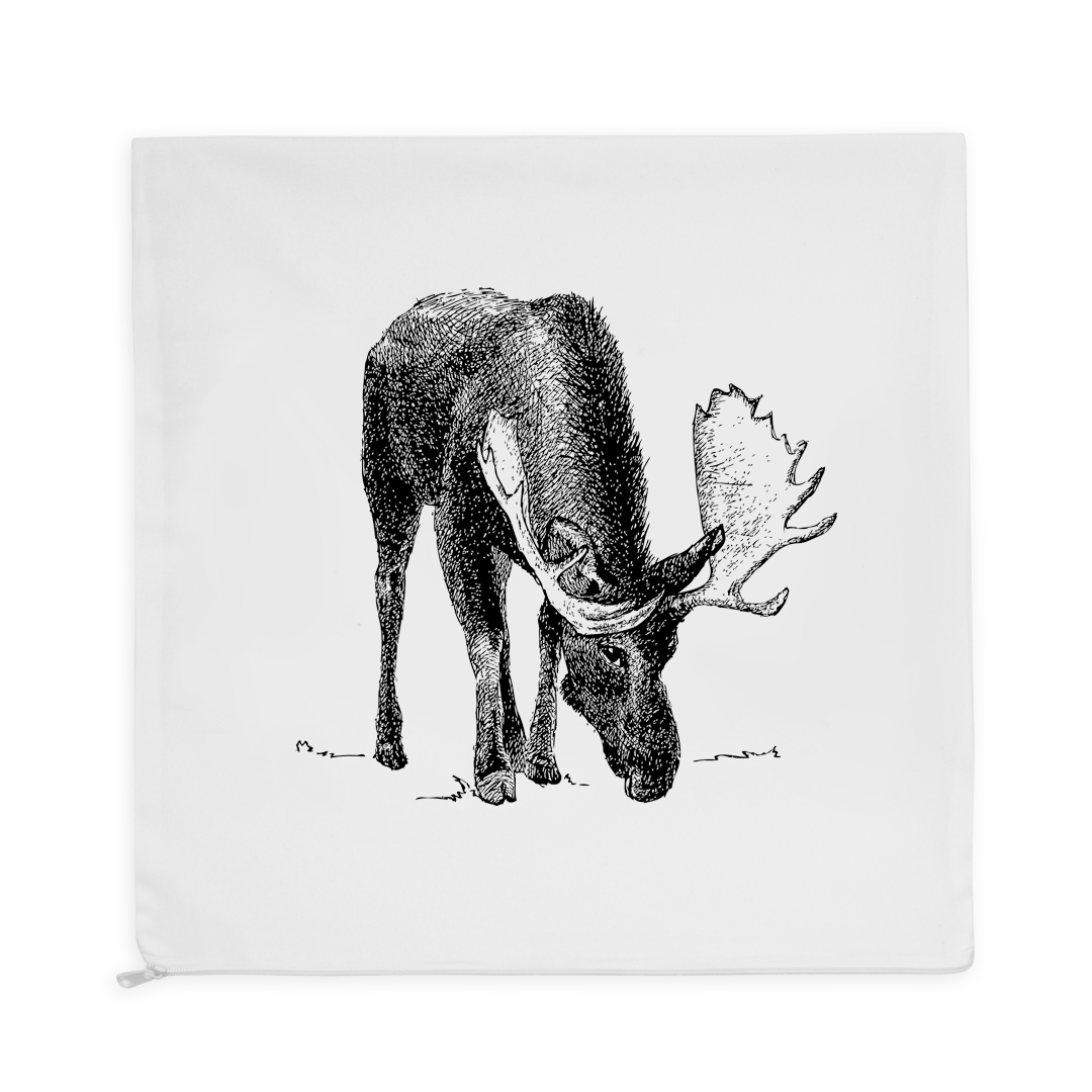 Poszewka dekoracyjna o wymiarach 37x37 cm z wizerunkiem łosia. Wykonana z miękkiego, miłego w dotyku matowego materiału poliestrowego. Posiada ukryty suwak (zamek błyskawiczny). Estetyczny nadruk na poszewce cechuje się dużą trwałością i szczegółowością. Poszewka jest sprzedawana bez wkładu, można osobno kupić go TUTAJ.