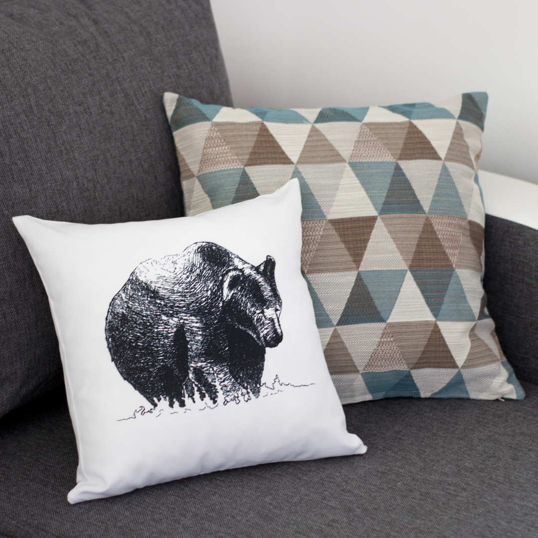 Poszewka dekoracyjna o wymiarach 37x37 cm z wizerunkiem niedźwiedzia. Wykonana z miękkiego, miłego w dotyku matowego materiału poliestrowego. Posiada ukryty suwak (zamek błyskawiczny). Estetyczny nadruk na poszewce cechuje się dużą trwałością i szczegółowością. Poszewka jest sprzedawana bez wkładu, można osobno kupić go TUTAJ.