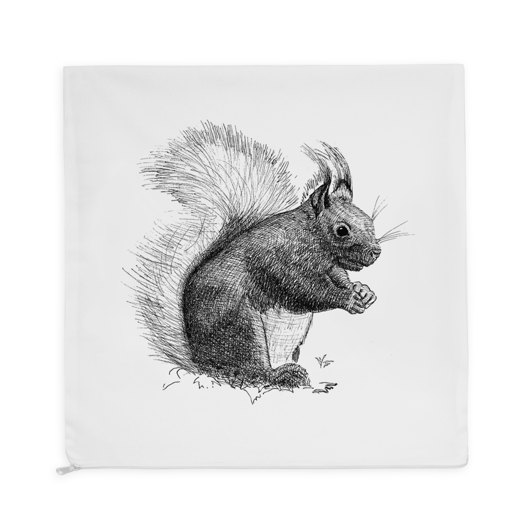 Poszewka dekoracyjna o wymiarach 37x37 cm z wizerunkiem wiewiórki. Wykonana z miękkiego, miłego w dotyku matowego materiału poliestrowego. Posiada ukryty suwak (zamek błyskawiczny). Estetyczny nadruk na poszewce cechuje się dużą trwałością i szczegółowością. Poszewka jest sprzedawana bez wkładu, można osobno kupić go TUTAJ.
