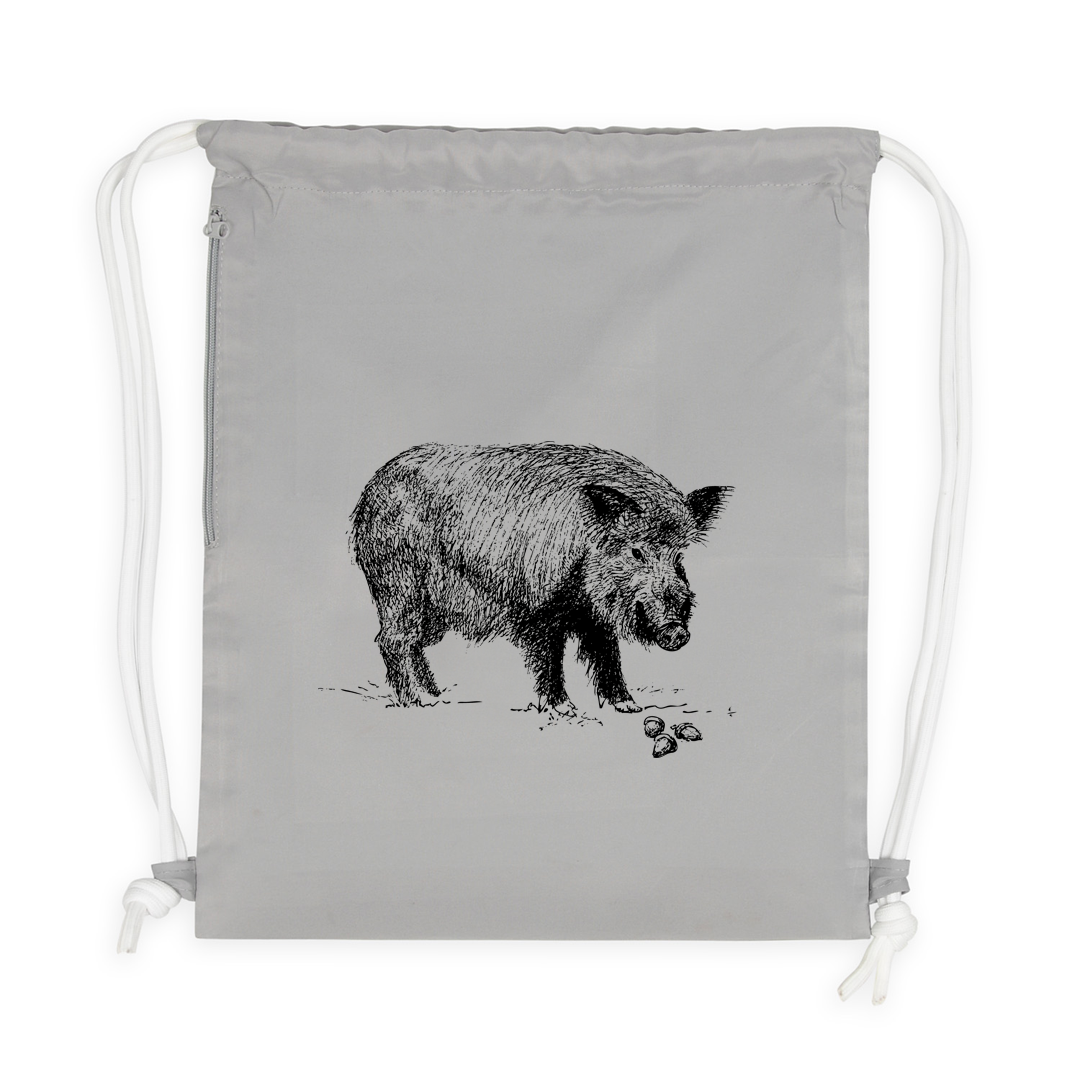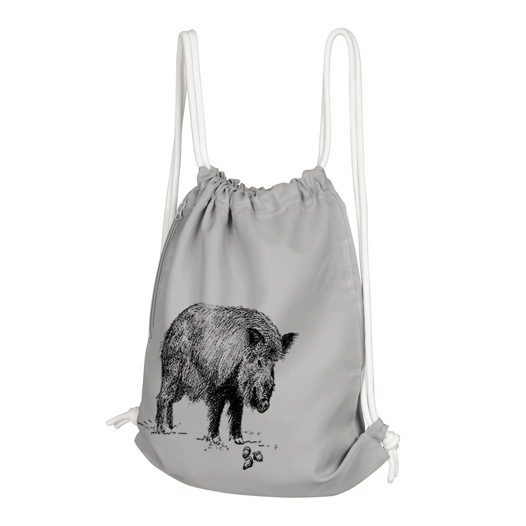 Dzik jest dziki, dzik jest zły, dzik ma bardzo ostre kły! Modny i wygodny worko-plecak z motywem dzika, autorstwa uzdolnionej ukraińskiej projektantki - Anastasii Shevchuk. Worek o wymiarach 40x49 cm, o pojemności 15l, w praktycznym, szarym kolorze. Można go prać w pralce w temp. 30 stopni. Materiał poliestrowy, trwały nadruk o wyrazistych kolorach. Worko-plecak ma grube sznurki w kolorze białym, oraz ukrytą kieszonkę na zamek błyskawiczny.