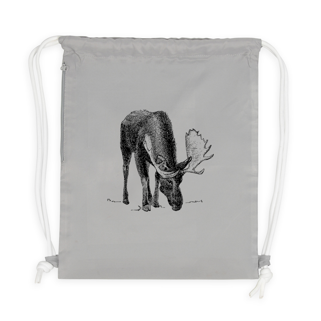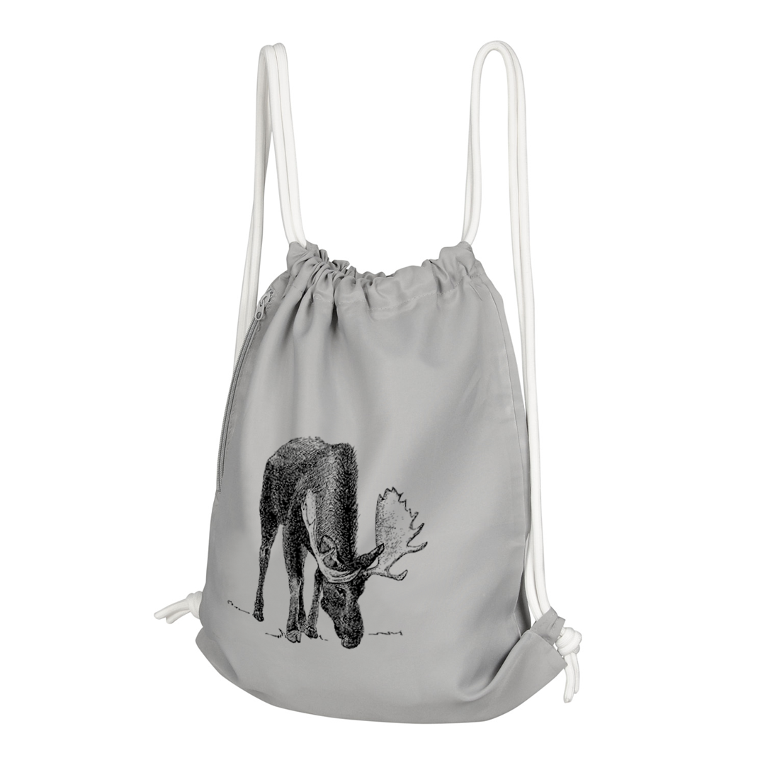 Modny i wygodny worko-plecak z motywem łosia, autorstwa uzdolnionej ukraińskiej projektantki - Anastasii Shevchuk. Worek o wymiarach 40x49 cm, o pojemności 15l, w praktycznym, szarym kolorze. Można go prać w pralce w temp. 30 stopni. Materiał poliestrowy, trwały nadruk o wyrazistych kolorach. Worko-plecak ma grube sznurki w kolorze białym, oraz ukrytą kieszonkę na zamek błyskawiczny.
