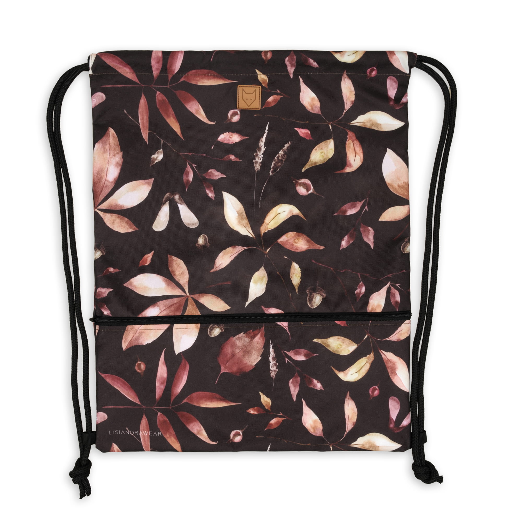 Worko-plecak o wymiarach 40x50 cm do codziennego użytku: można go nosić na spacer, do pracy lub na zakupy. Świetnie sprawdzi się jako alternatywa dla zwykłego plecaka lub torebki. Worko-plecak jest wygodny i praktyczny. Ma regulowane sznurki oraz sporą, pojemną kieszeń na zamek błyskawiczny. Wzór zaprojektowaliśmy specjalnie dla kobiet, lubiących spokojne i neutralne stylizacje. Ciepłe, stonowane kolory jesiennych liści zdobiącej tkaninę, łączą w sobie spokój i nutkę elegancji. Produkt jest jednak na tyle uniwersalny, że pasować będzie o każdej porze roku.