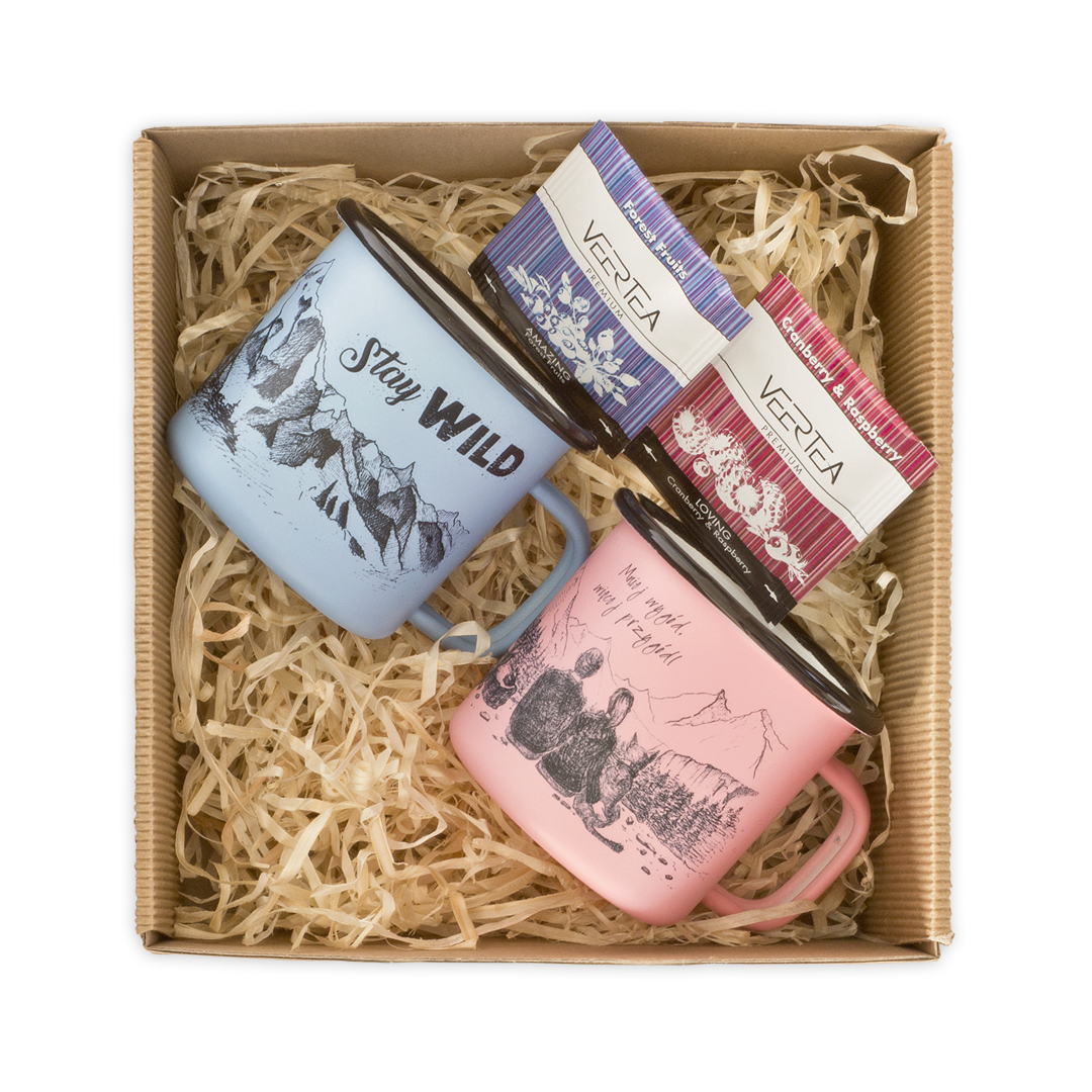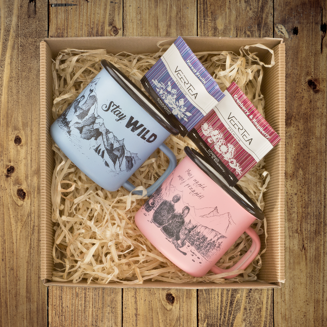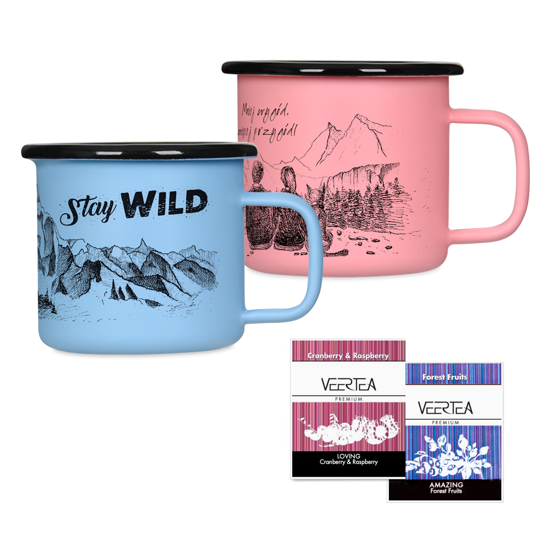 Zestaw prezentowy składający się z dwóch kubków emaliowanych retro oraz 2 saszetek herbaty Vertea Premium. Piękne, matowe kubeczki o pastelowych kolorach, skradły Wasze serca, odkąd tylko pojawiły się w naszym sklepie. Doskonale nadadzą się na sympatyczne upominki dla par. Kupując zestaw, możecie wybrać 2 dowolne kubeczki retro dostępne w Lisiej Norze, a także je spersonalizować, by stały się zupełnie niepowtarzalne i wyjątkowe.